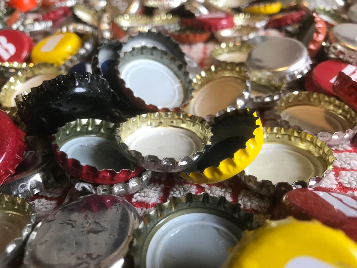 A great deal of preparation goes into the design process as a whole. Before designing, I collect, clean and systematically arrange the bottletops into carefully chosen groups. The organisation and attention to detail when categorising each bottle top is crucial for efficiency and creativity as works progress.